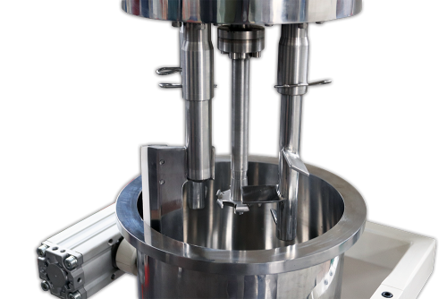 The standard finger-blade mixing tools of the Double Planetary Mixer are designed to work in an overlapping way, thus create strong axial and radial motions in the mix-product, as well as a highly intensive shearing and dispersing effect.