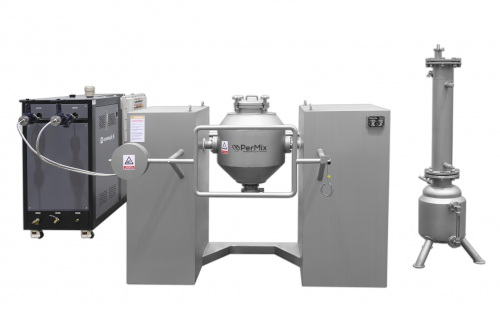 The PerMix PDC series Double Cone Mixer, part of our powder mixers collection, provides a gentle high-flowing mixing process for solids/solids in a proportion of up to 1:100.000 with the possibility of using an intensifier bar to enhance the mixture, and solids/liquids in powder or granulate form with different specific weights. Our Double Cone Mixer can also be configured in a vacuum mixer/dryer configuration allowing for mixing & drying under vacuum and includes heating & cooling options