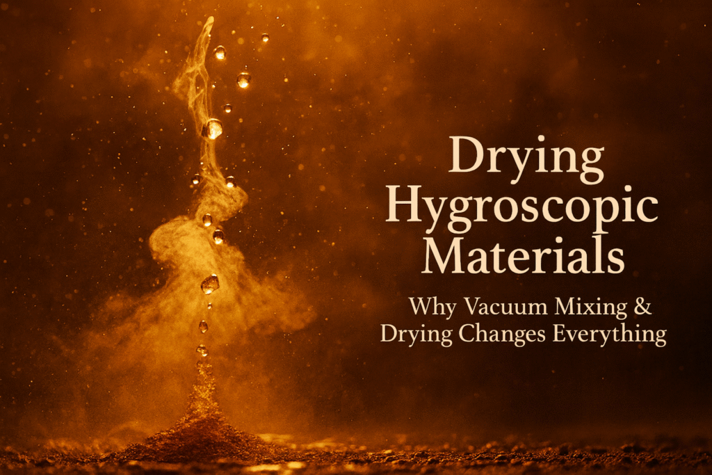 Mixing & Drying Hygroscopic Materials: Why It Matters More Than Most People Realize Mixing & Drying Hygroscopic Materials—salts, sugars, proteins, polymers, nutraceutical ingredients, minerals—treat ambient humidity like an all-you-can-eat buffet. They absorb water through capillary action, surface bonding, and vapor diffusion. Once moisture locks in, particle surfaces change, flow behavior shifts, and the material’s entire […]