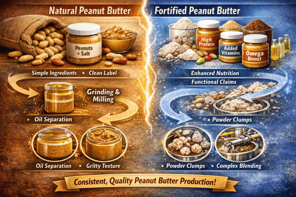 Making Peanut Butter Better, More Natural & More Nutritious From “Just Peanuts” to Fortified, High-Performance Spreads — and the Mixing/Milling Systems That Make It Possible PerMix + DP Pulverizers Executive Summary Making peanut butter looks simple: peanuts go in, peanut butter comes out. In reality, modern peanut butter is a controlled suspension of solids in […]
